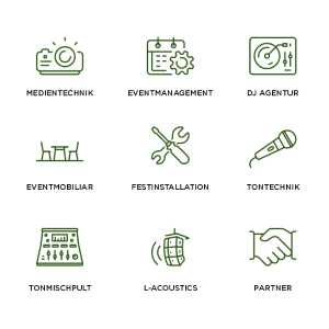 Das Team von Gebrauchte-Veranstaltungstechnik.de suchte für die Hauptrubriken der mobilen Version 12 aussagekräftige Icons. Wichtig war, dass die Icons alleine stehen konnten.